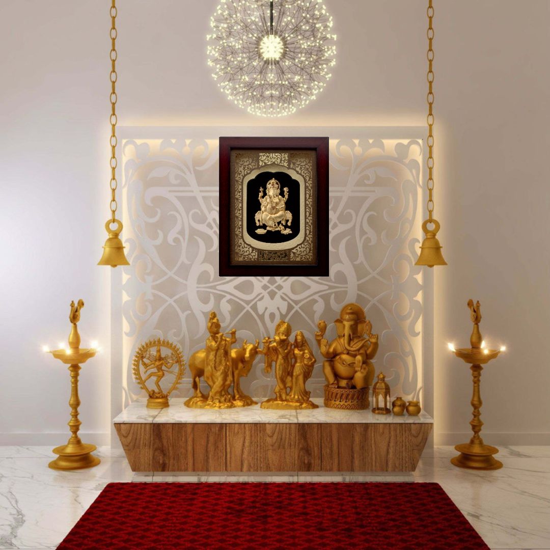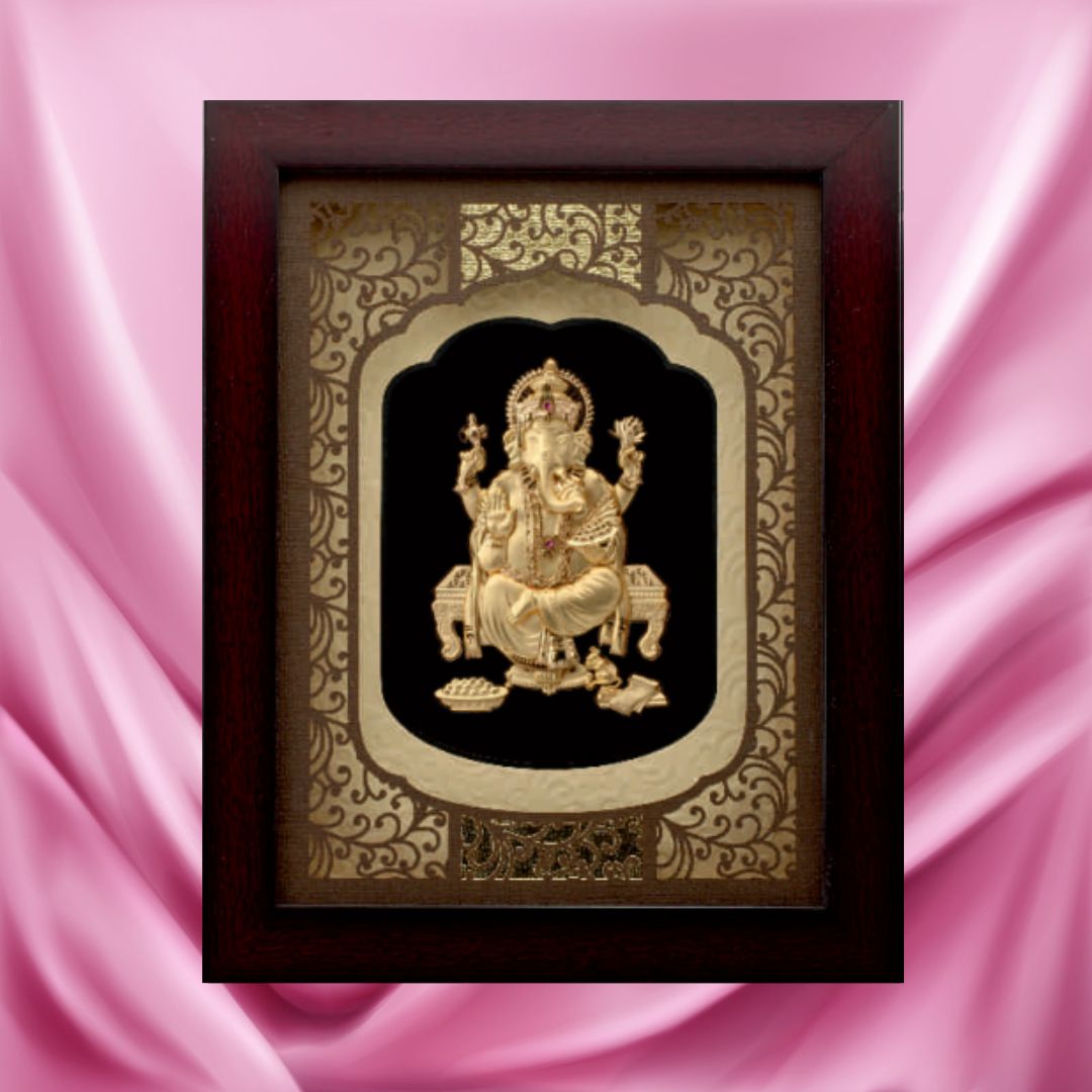 24KT GOLD FOIL EXTRA MINI SOLID CARVING GANESHA FRAME.