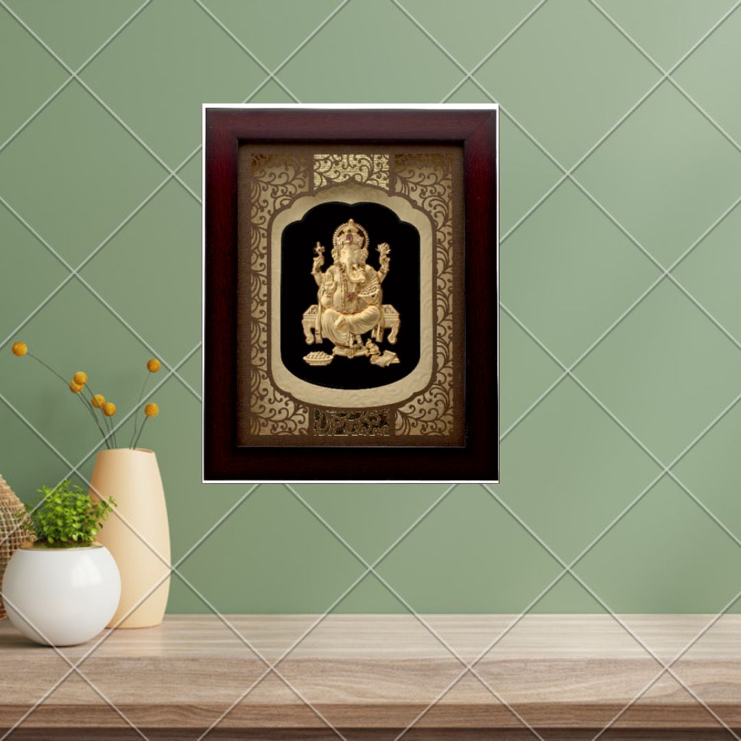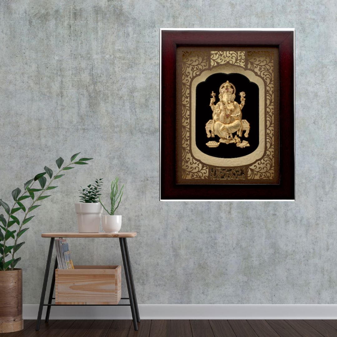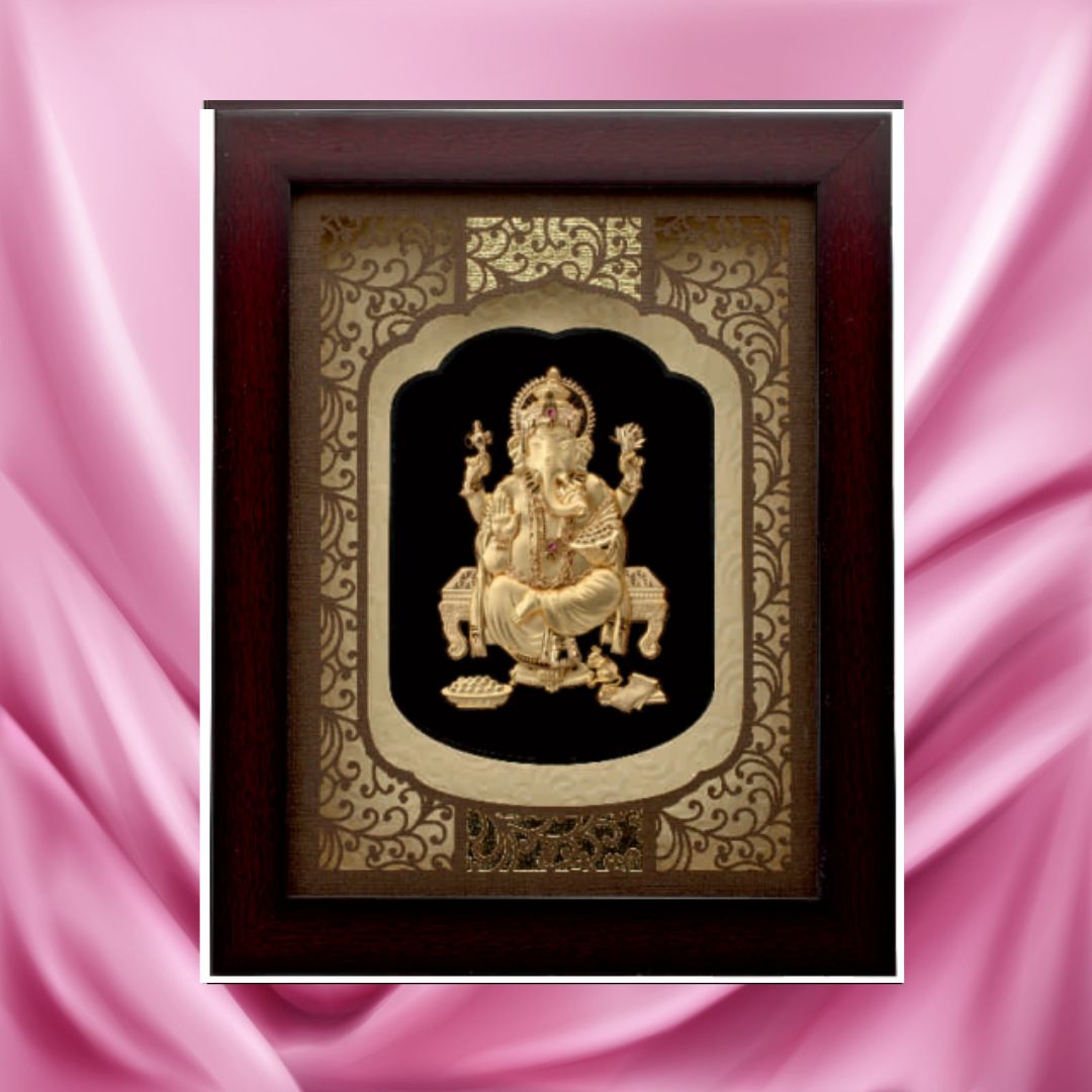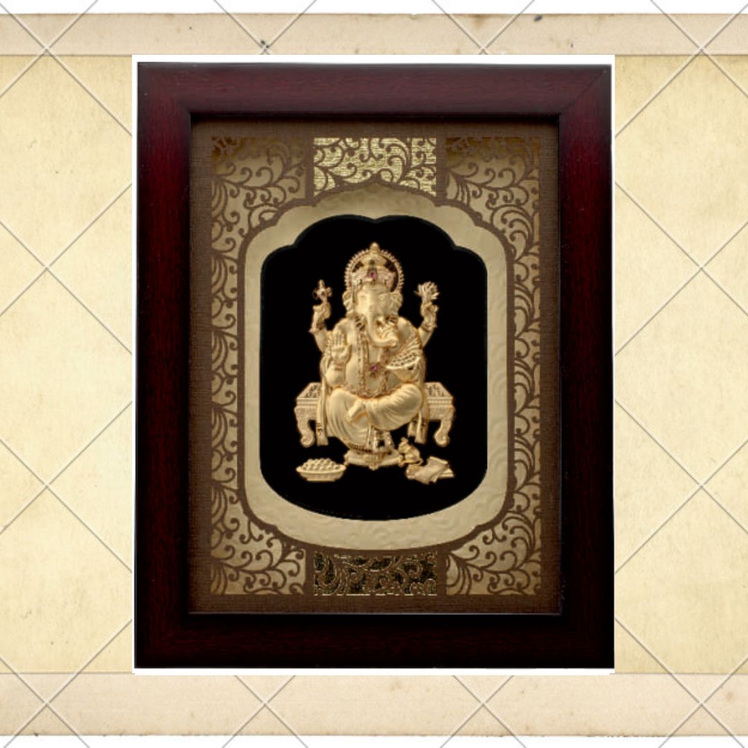 24KT GOLD FOIL SOLID ROSEWOOD GANESHA FRAME