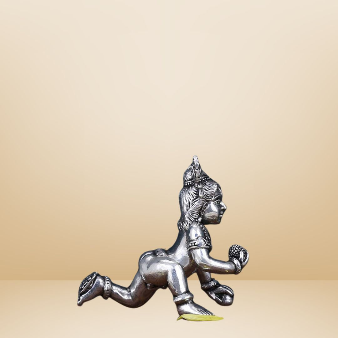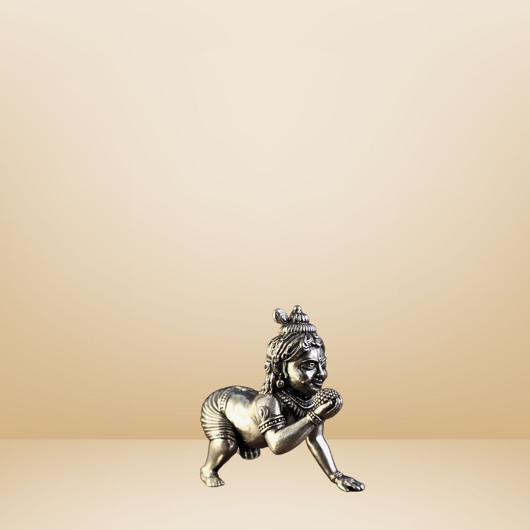 This charming idol of Laddoo Gopal captures the innocence of Krishna Ji as a child, crawling forward with a laddu in hand. Crafted in 92.5 silver, it radiates warmth, sweetness, and devotion — a perfect addition to your pooja space.