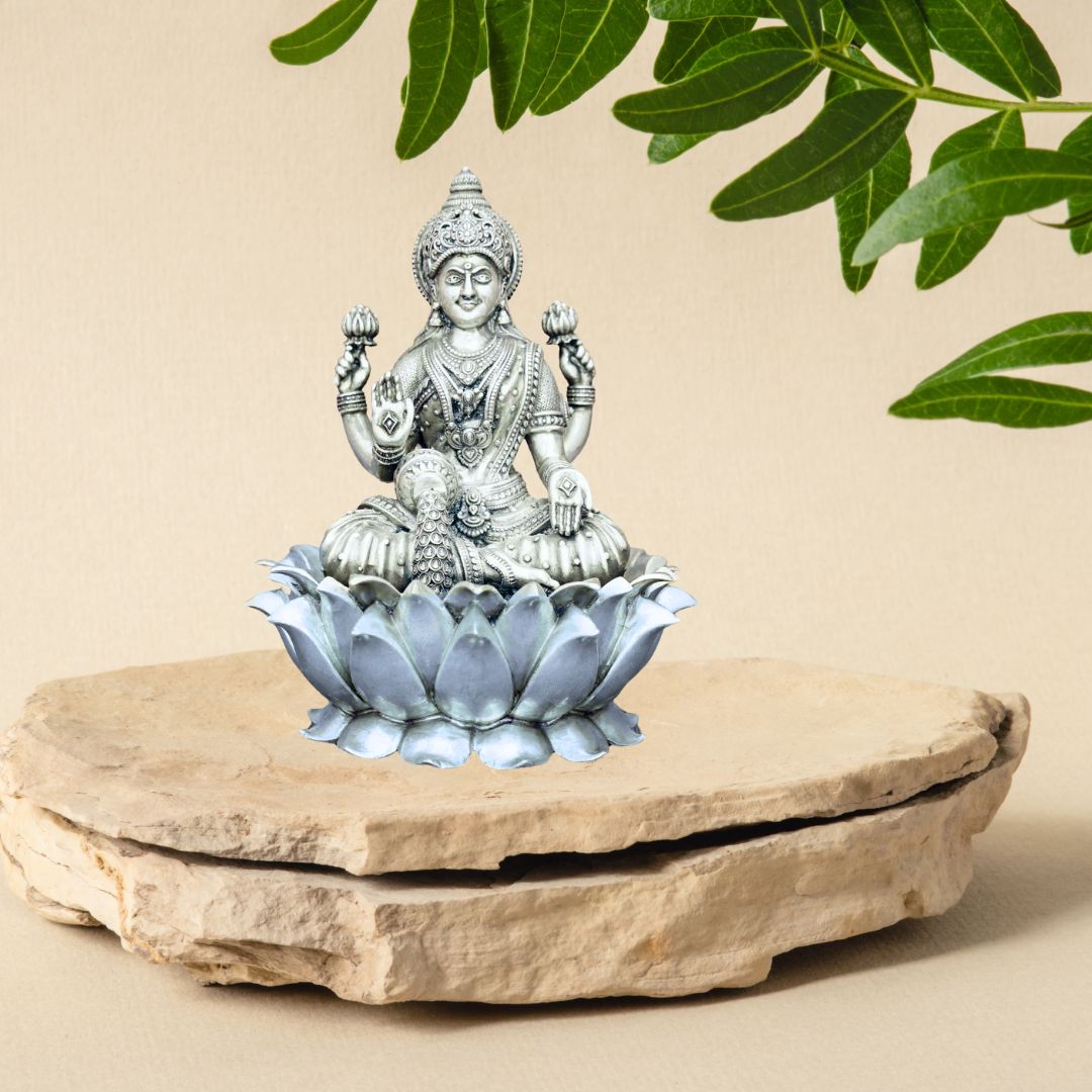 This elegant 925 silver idol of Lakshmi Ji, seated on a blooming lotus, radiates divine grace and abundance. Especially worshipped during Varalakshmi Vratam, this handcrafted piece brings wealth, harmony, and sacred feminine energy into your home — a timeless addition to pooja rituals rooted in Telugu tradition.