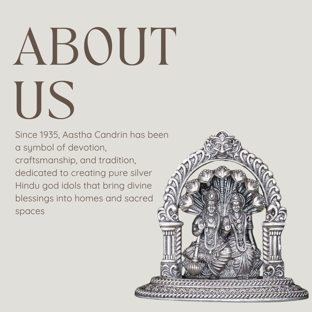 Since 1935, Aastha Candrin has been a symbol of devotion, craftsmanship, and tradition, dedicated to creating pure silver Hindu god idols that bring divine blessings into homes and sacred spaces. With nearly a century of heritage, we take pride in preserving the spiritual essence of each deity through intricate designs and masterful artistry.