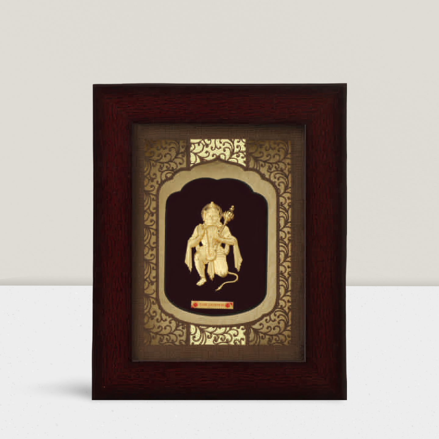 24KT GOLD FOIL EXTRA MINI SOLID CARVING HANUMAN JI FRAME